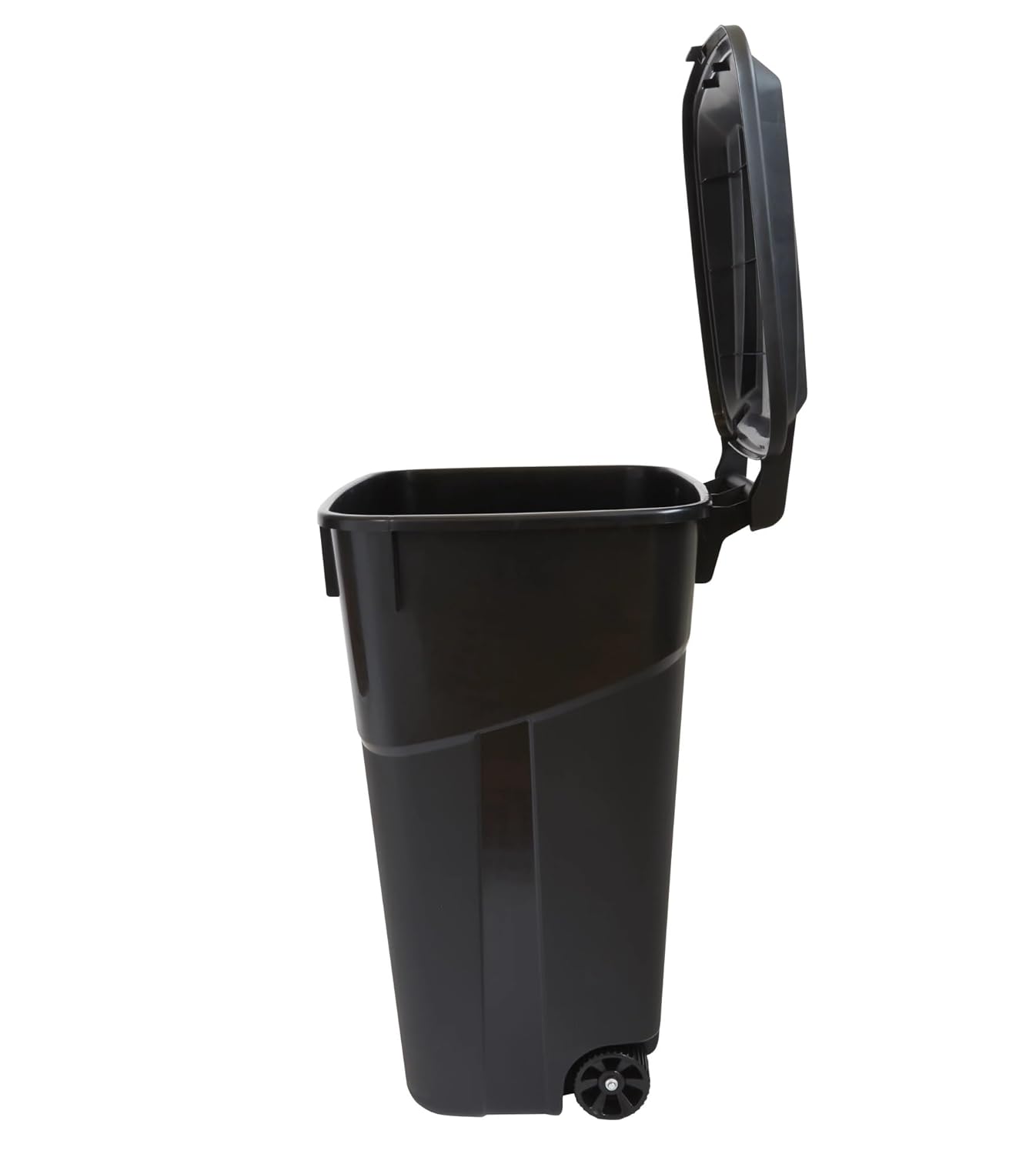 32 Gallon Wheeled Heavy Duty Plastic Garbage Can, Attached Lid, Black