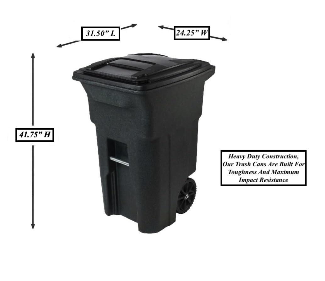 64 Gallon Garbage Cans Trash Cans 2 Rugged Wheels Ergonomic Handle and Lid Heavy Duty Construction Built for Toughness and Maximum Impact Resistance Perfect for Both Indoor Or Outdoor Use