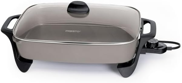 16″ Ceramic Electric Skillet With Glass Cover, Silver 06860, Ceramic Nonstick Surface, Heat Control Automatically, Aluminum Base, No PFAS, PFOS, PFOA, Or PTFE