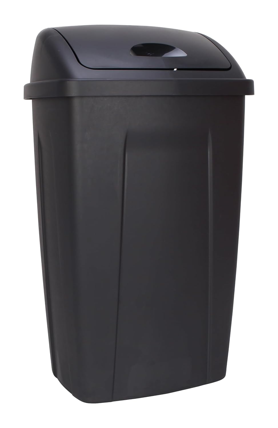 13 Gallon Trash Can, Plastic Swing Top Kitchen Garbage Trash Can, Black
