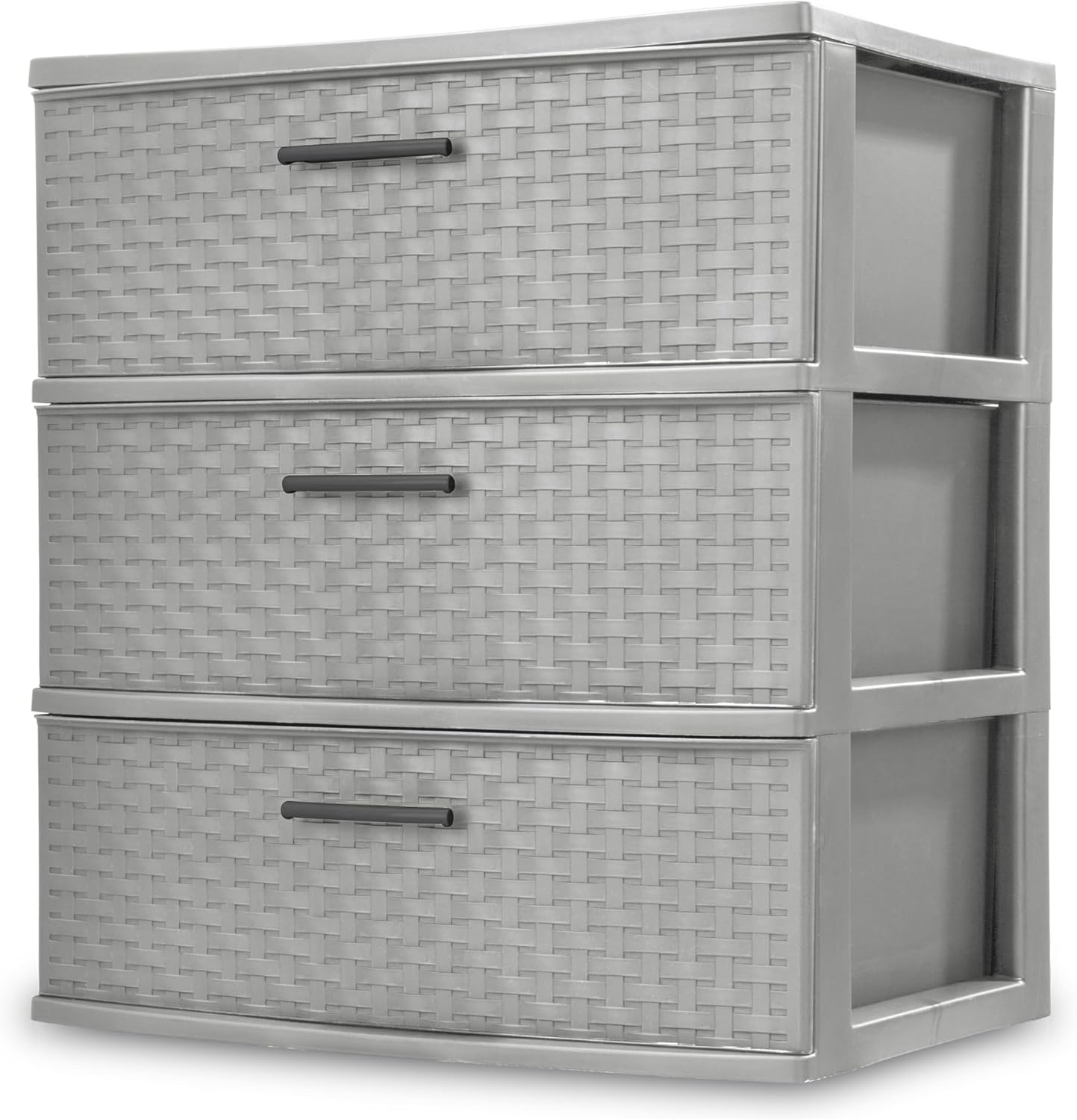 3 Drawer Storage Weave Cart Set of 2 Espresso Plastic Storage Box Organizer NEW